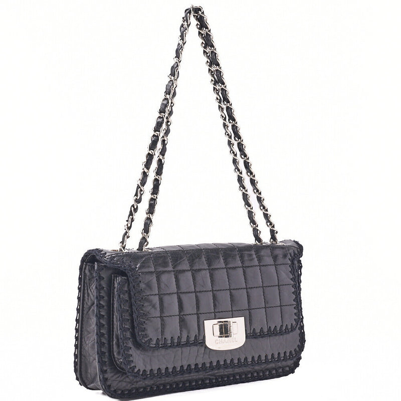 Pre-Owned Shoulder Bag Chocolate Bar Turnlock Vintage Calf Black Silver-Tone Hardware, Pre-Owned