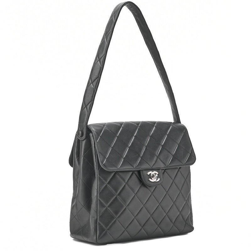 Pre-Owned Matelassé Double Face One Shoulder Bag Lambskin Black Silver-Tone Hardware, Pre-Owned