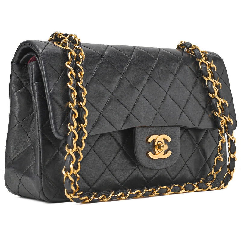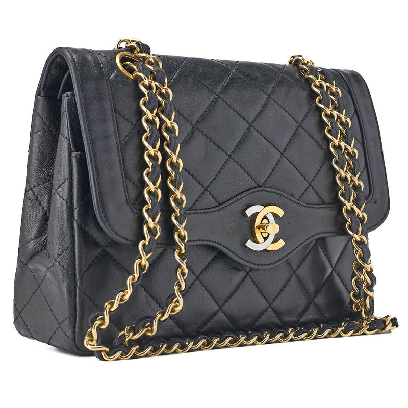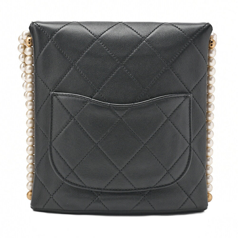Pre-Owned Shoulder Bag, Outside Flap, Double Chain Shoulder, Lambskin, Black, Gold-Tone Hardware, Pre-Owned