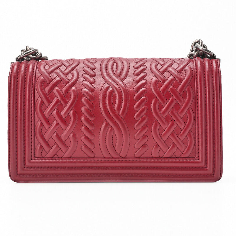 Pre-Owned Shoulder Bag, Braided Design, Chain Shoulder, Lambskin, Red, Silver-Tone Hardware, Pre-Owned