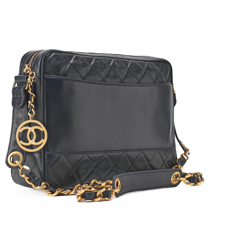 Pre-Owned Shoulder Bag Matelasse Circle Coco Charm Lambskin Navy Gold-Tone Hardware Pre-Owned