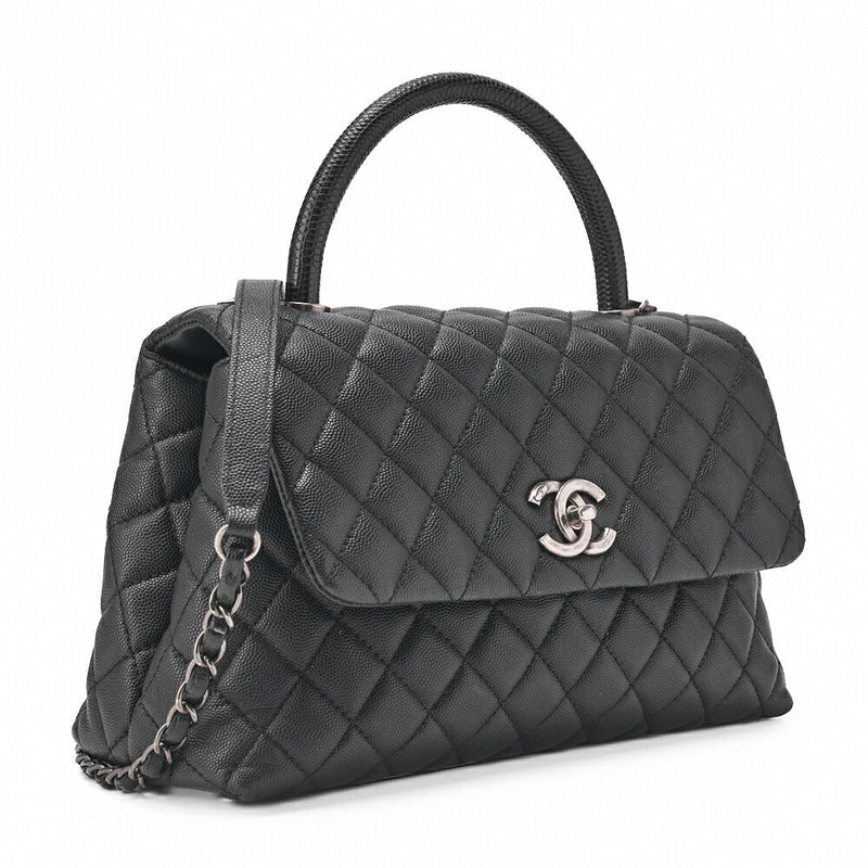 Pre-Owned Shoulder Bag Matelasse Coco Handle 2WAY Caviar Skin Black Silver-Tone Hardware Pre-Owned