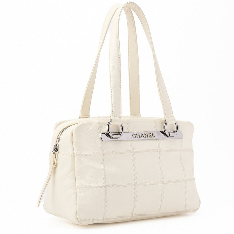 Pre-Owned Shoulder Bag, Chocolate Bar Logo, Caviar Skin, White, Silver-Tone Hardware, Pre-Owned