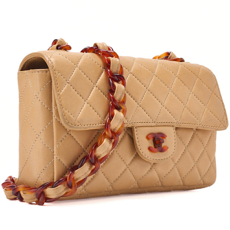 Pre-Owned Shoulder Bag Matelasse Lambskin Tortoiseshell Pattern Beige Gold-Tone Hardware Pre-Owned