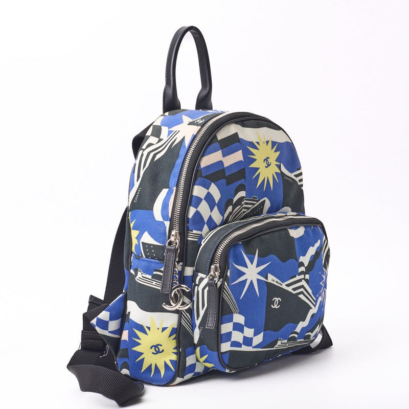 Pre-Owned Backpack Bag, Cruise Line, Coco Charm, Canvas, Multicolor, Silver-Tone Hardware, Pre-Owned