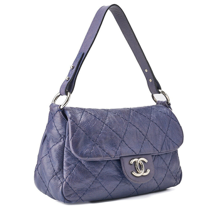 Pre-Owned Shoulder Bag Matelasse Leather Navy Silver-Tone Hardware Pre-Owned
