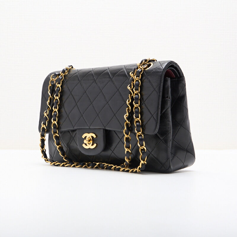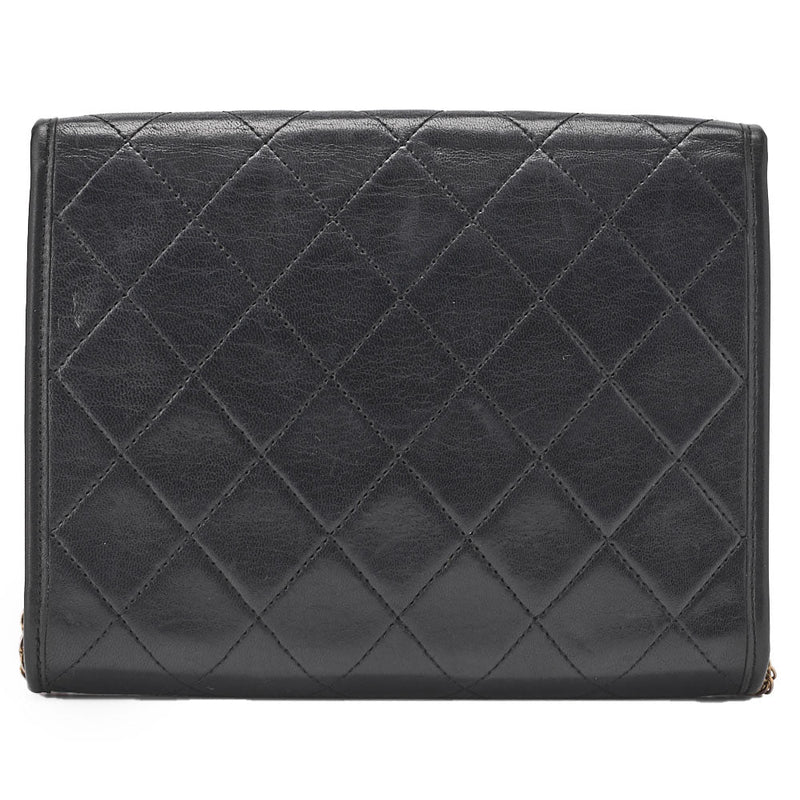 Pre-Owned Shoulder Bag Matelasse Double Flap Lambskin Black Gold-Tone Hardware Pre-Owned