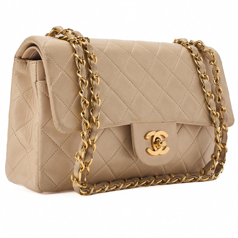 Pre-Owned Shoulder Bag Matelasse 23 Double Flap Chain Lambskin Beige Gold-Tone Hardware Pre-Owned