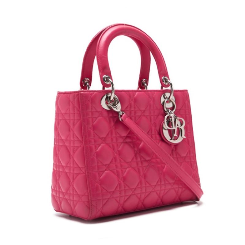 Pre-Owned Lady Cannage 2WAY Handbag Lambskin Pink Silver-Tone Hardware Pre-Owned