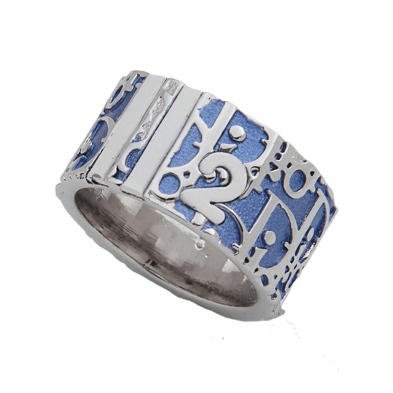 Pre-Owned Ring Trotter Oblique, Canvas, Blue, Silver-Tone Hardware, Pre-Owned