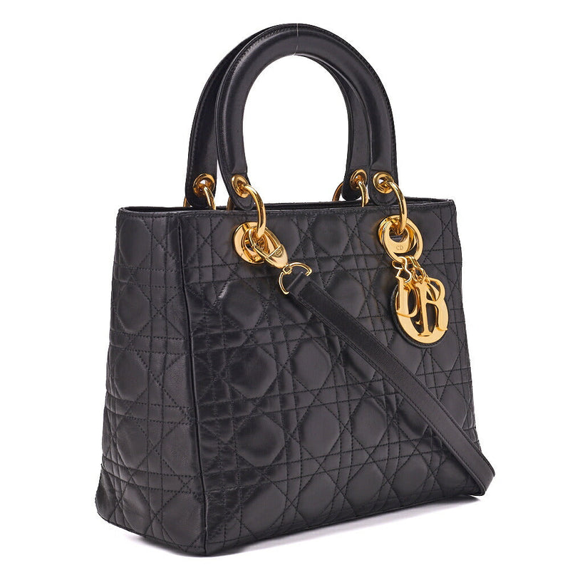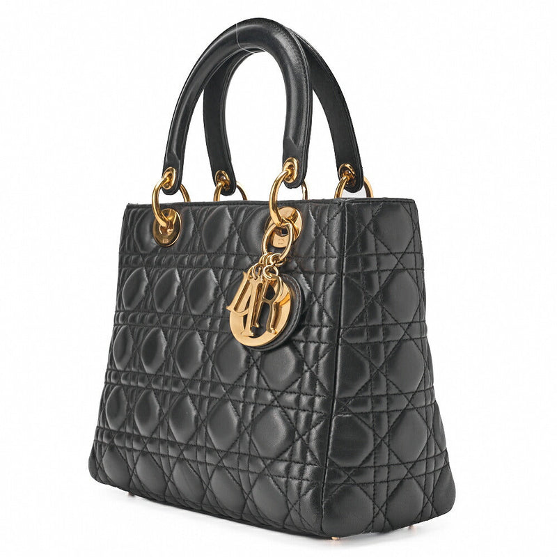 Pre-Owned Lady Cannage 2WAY Handbag Lambskin Black Gold-Tone Hardware Pre-Owned