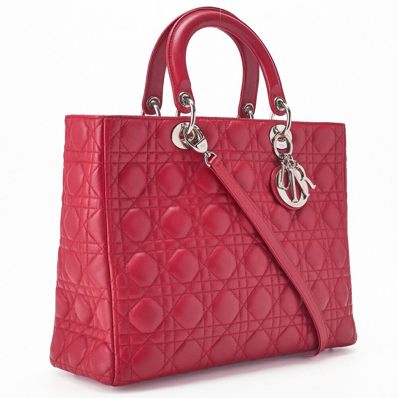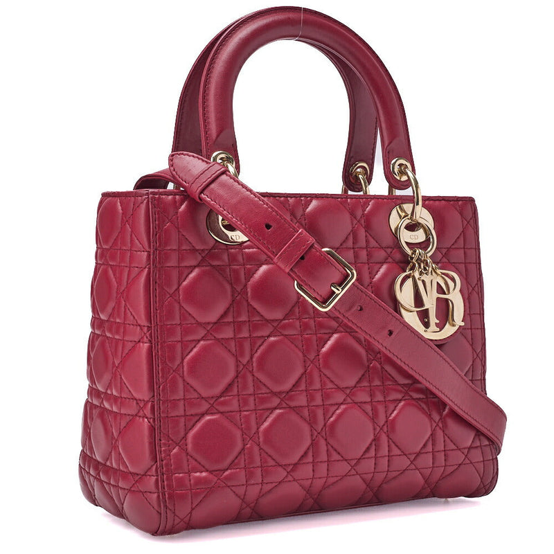 Pre-Owned Lady Vanity Cannage 2WAY Shoulder Bag Lambskin Red Gold-Tone Hardware Pre-Owned