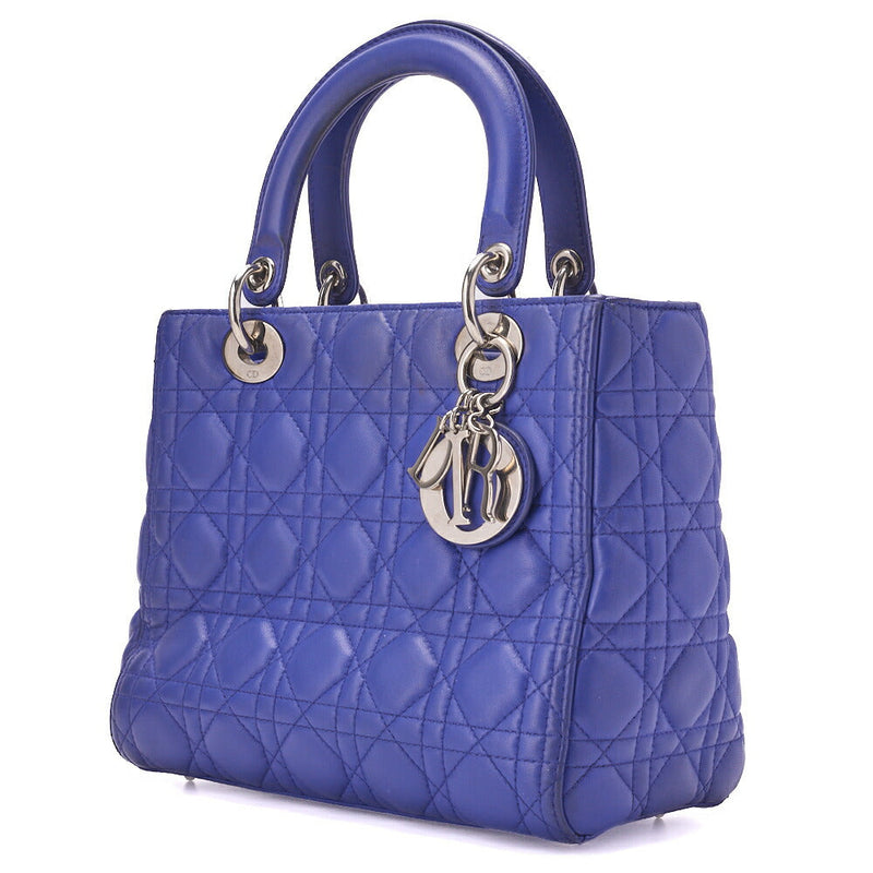 Pre-Owned Lady Cannage Handbag Lambskin Blue Silver-Tone Hardware Pre-Owned