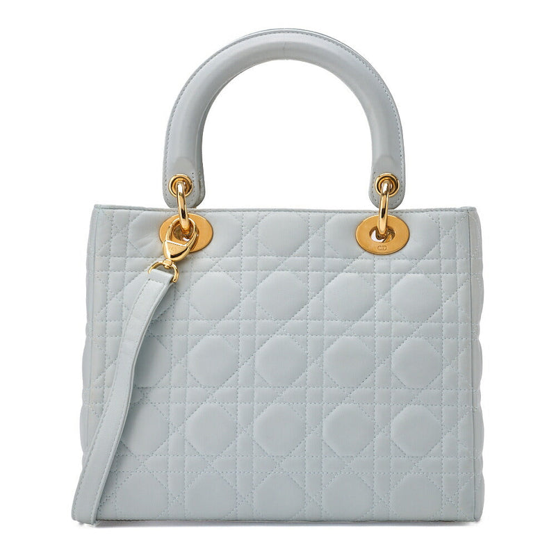 Pre-Owned Lady Cannage 2WAY Handbag Lambskin Light Blue Gold-Tone Hardware Pre-Owned