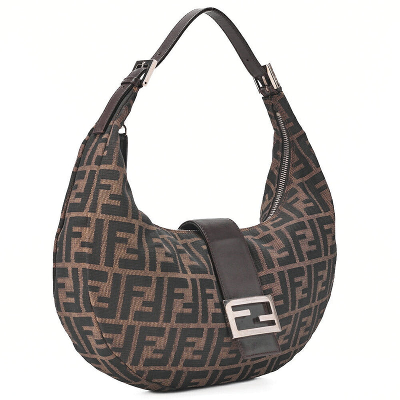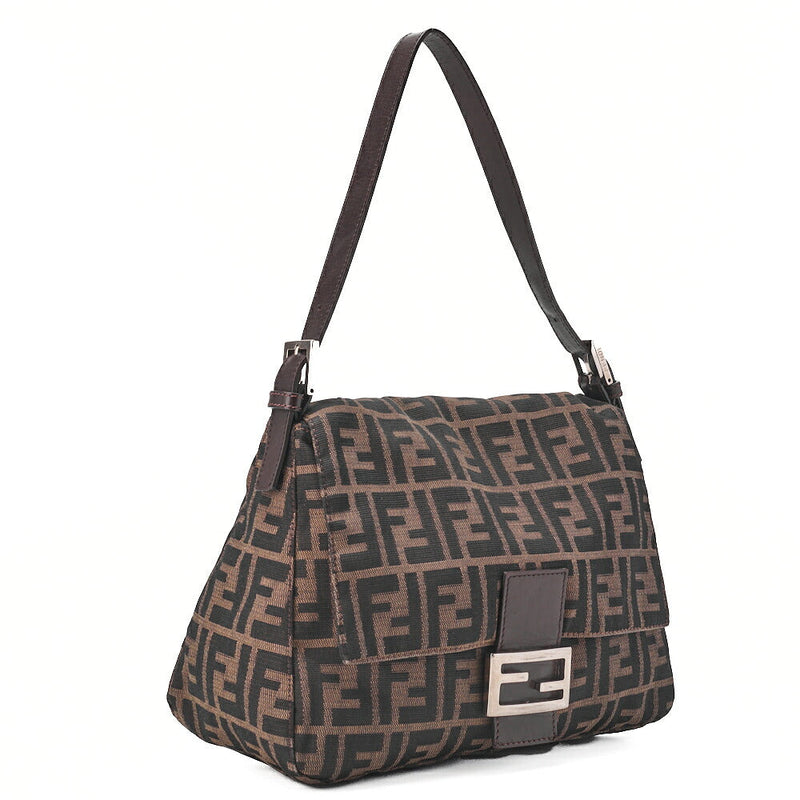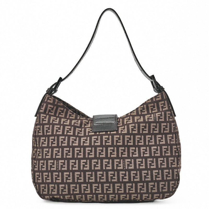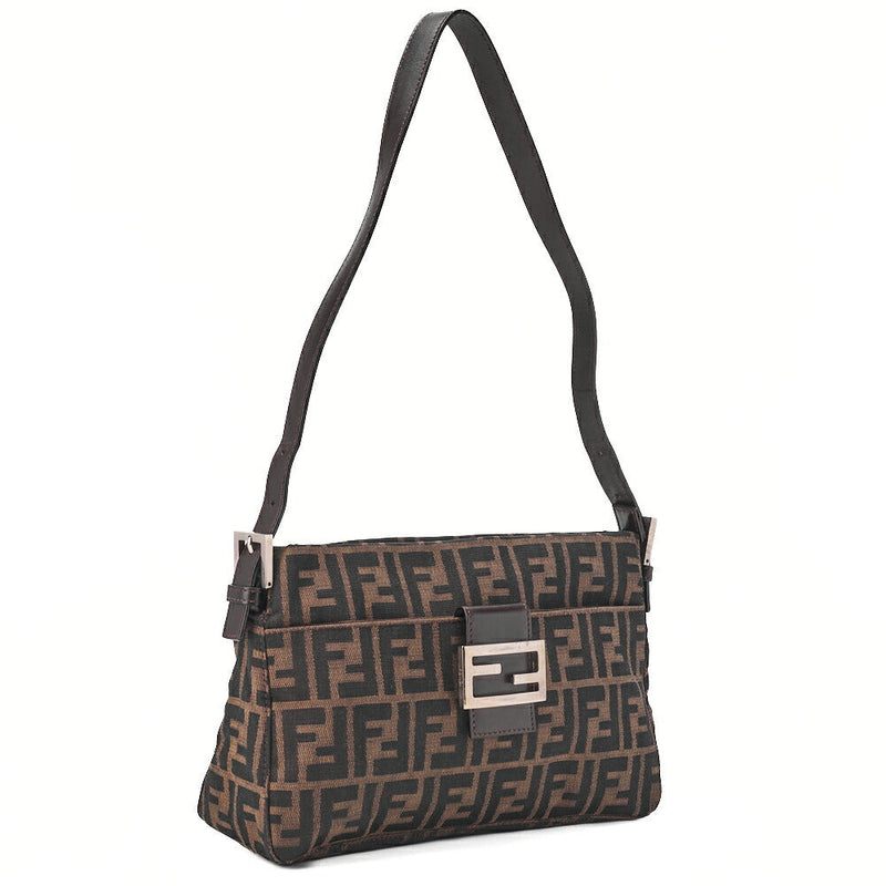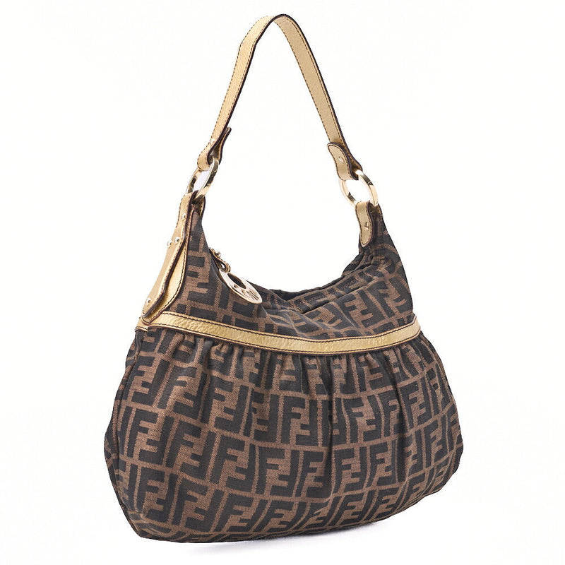 Pre-Owned Shoulder Bag, Zucca Canvas Leather, Brown, Gold-Tone Hardware, Pre-Owned
