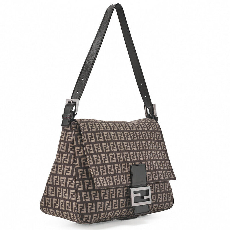 Pre-Owned Shoulder Bag Zucca Canvas Leather Brown Silver-Tone Hardware Pre-Owned