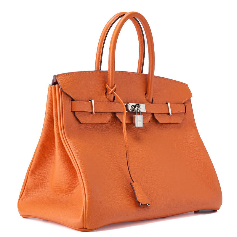 Pre-Owned Birkin 35 Handbag Vo Epson Orange Vaux Epson Silver-Tone Hardware Pre-Owned
