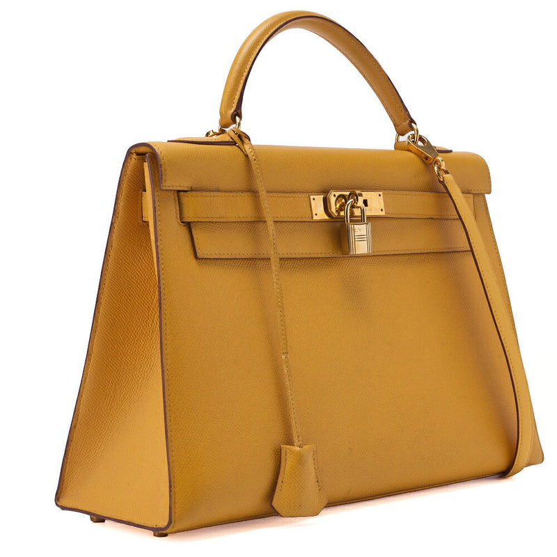 Pre-Owned Kelly 32 Handbag, Kushbel Yellow, Gold-Tone Hardware, Pre-Owned