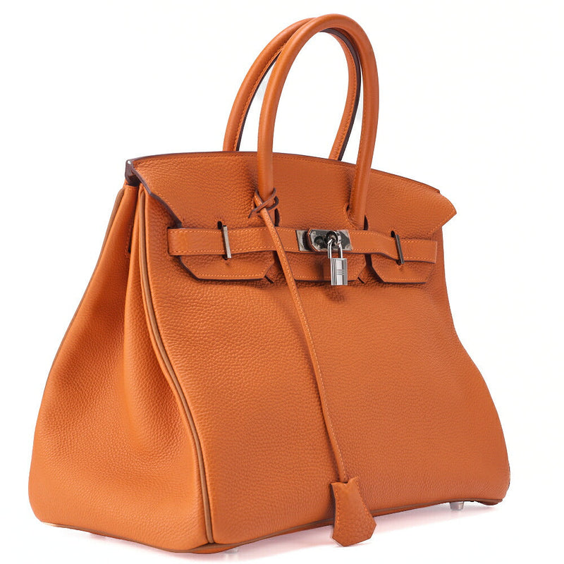 Pre-Owned Birkin 35 Handbag Togo Orange Silver-Tone Hardware, Pre-Owned