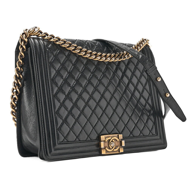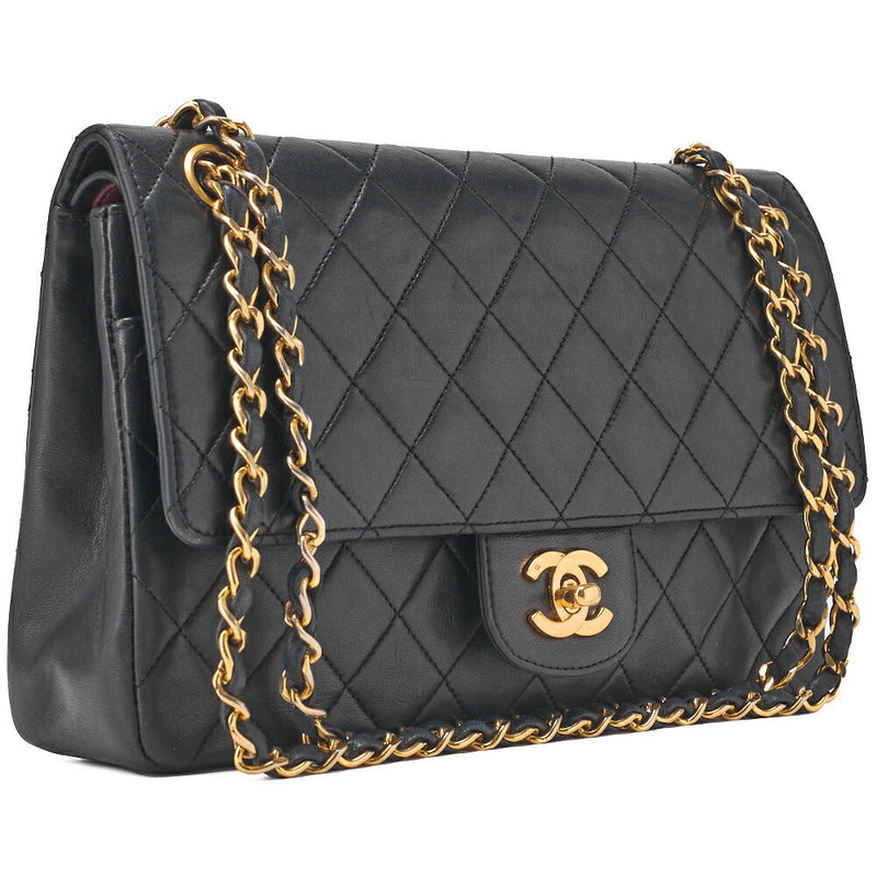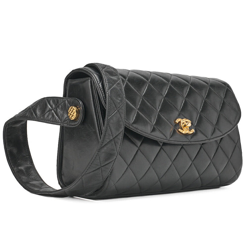 Pre-Owned Matlassse Double Flap Chain Shoulder Bag Lambskin Black Gold-Tone Hardware, Pre-Owned