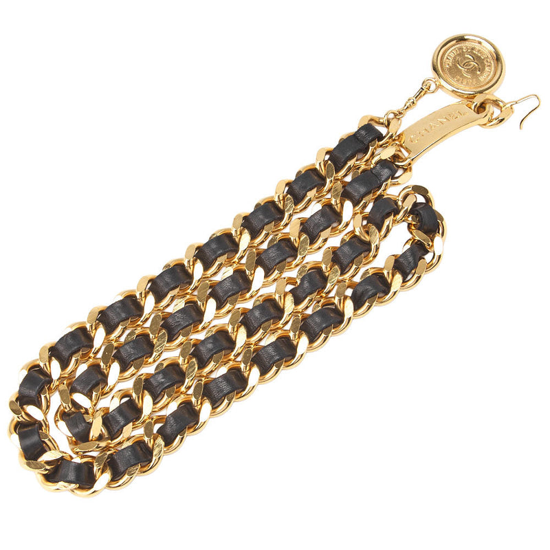Pre-Owned Cocomark Chain Belt GP Leather Black Gold-Tone Hardware, Pre-Owned