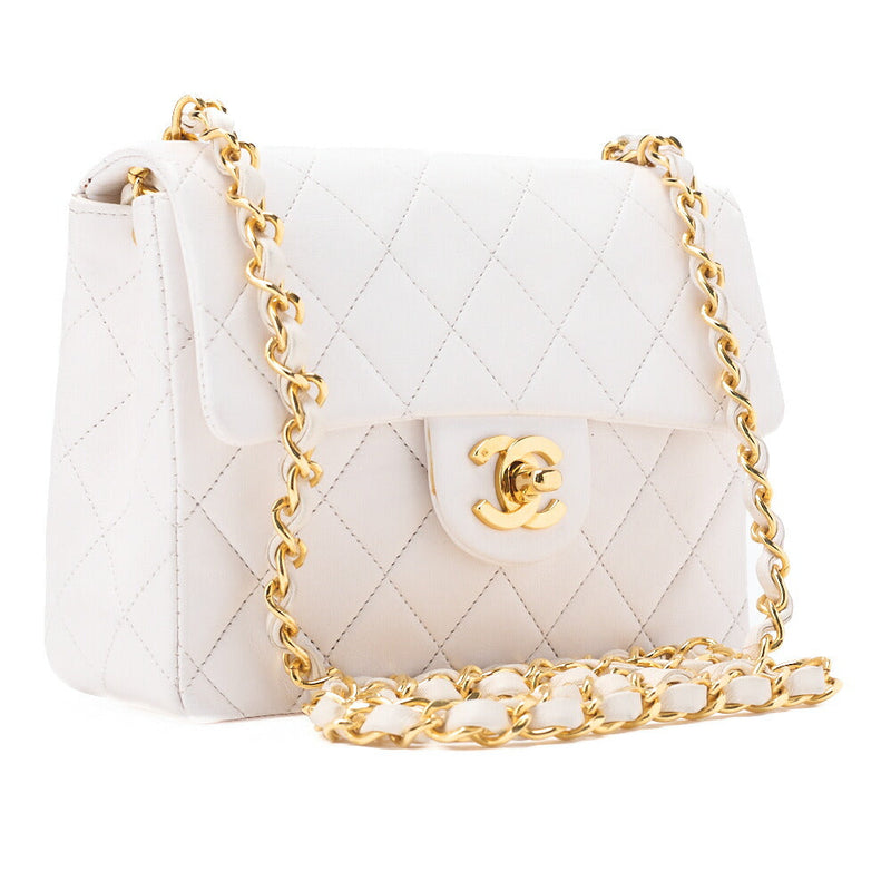 Pre-Owned Chain Shoulder Bag Mini Matelasse 18cm Lambskin White Single Flap Turnlock?Gold-Tone Hardware, Pre-Owned