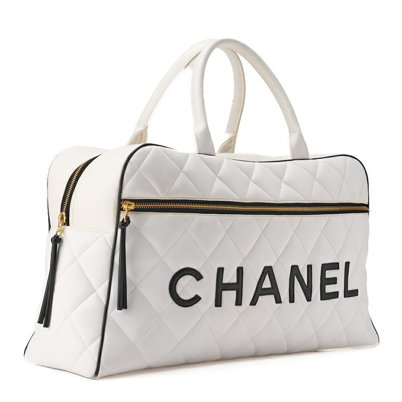 Pre-Owned Handbag Boston Bag Matelasse Calfskin White Gold-Tone Hardware Pre-Owned