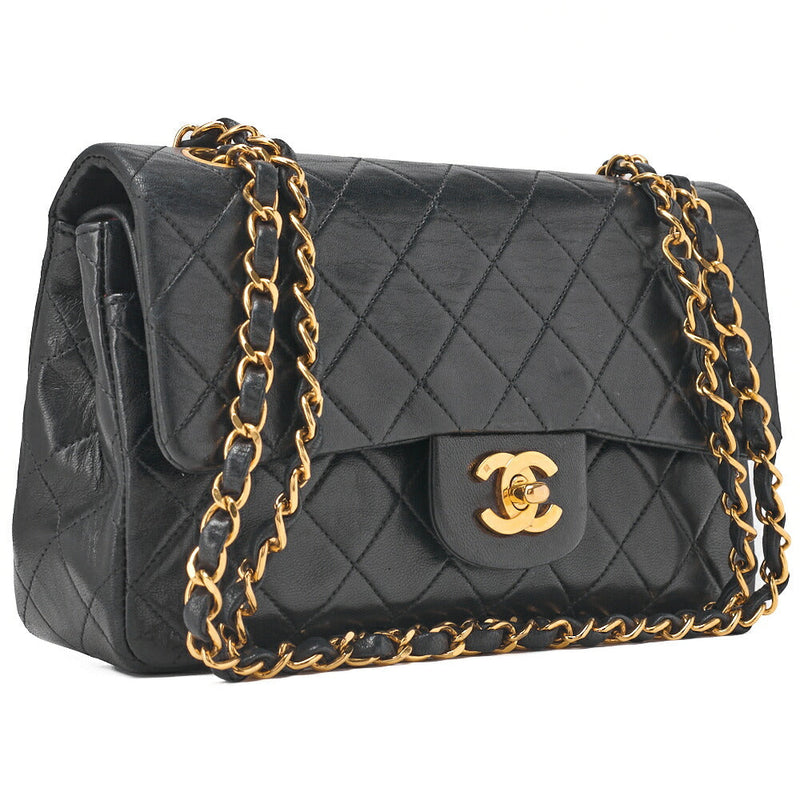 Pre-Owned Chain Shoulder Bag Matlasse Double Flap 23cm Lambskin Black Gold-Tone Hardware, Pre-Owned