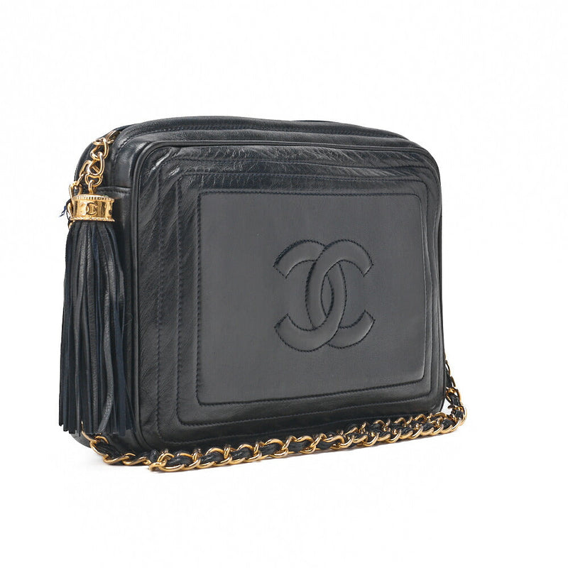 Pre-Owned Chain Shoulder Bag Matelassé Coco Mark Fringe Lambskin Black Gold-Tone Hardware, Pre-Owned