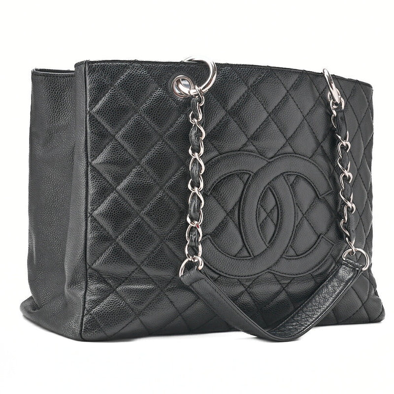 Pre-Owned Shoulder Bag Matelassé GST Chain Tote Caviskin Black Silver-Tone Hardware, Pre-Owned