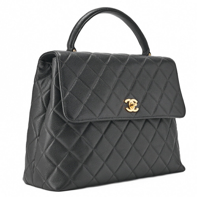 Pre-Owned Handbag Matelasse Turn Lock Caviar Skin Black Gold-Tone Hardware Pre-Owned