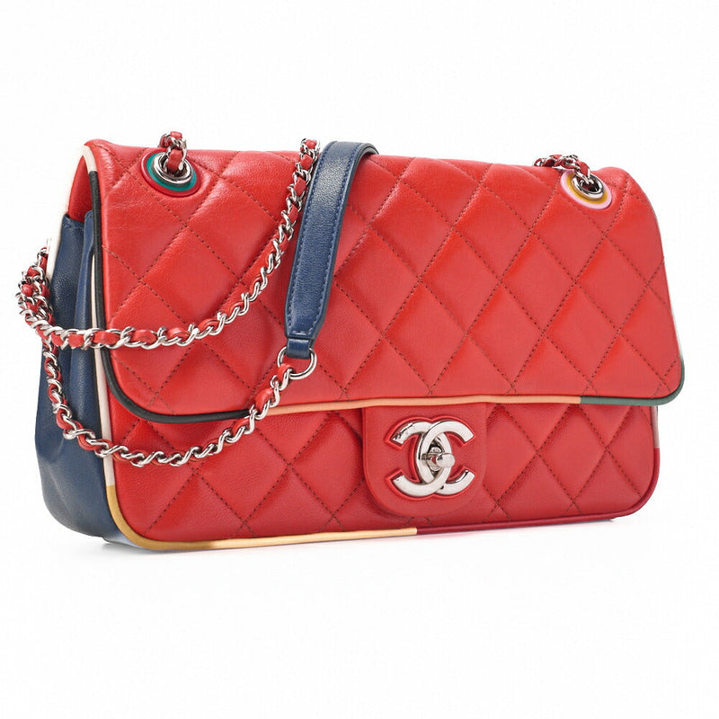 Pre-Owned Shoulder Bag Matelasse Denim Blue Single Flap Turn Lock Silver-Tone Hardware Pre-Owned