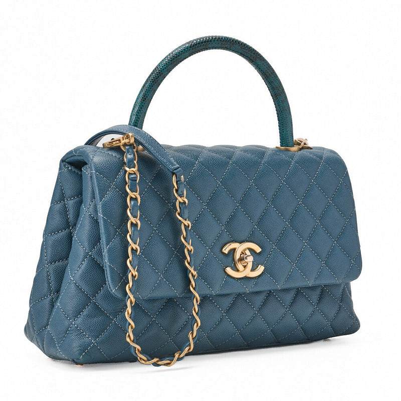 Pre-Owned Shoulder Tote Bag Matelasse Coco Handle 2WAY Caviar Skin Navy Gold-Tone Hardware Pre-Owned