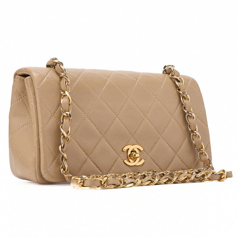 Pre-Owned Chain Shoulder Bag Mini Matelassé 18cm Lambskin Beige Full Flap Turnlock Gold-Tone Hardware, Pre-Owned