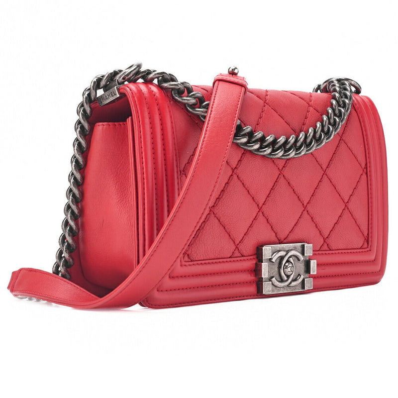Pre-Owned Boy Matelassé Chain Shoulder Calfskin Red Silver-Tone Hardware, Pre-Owned