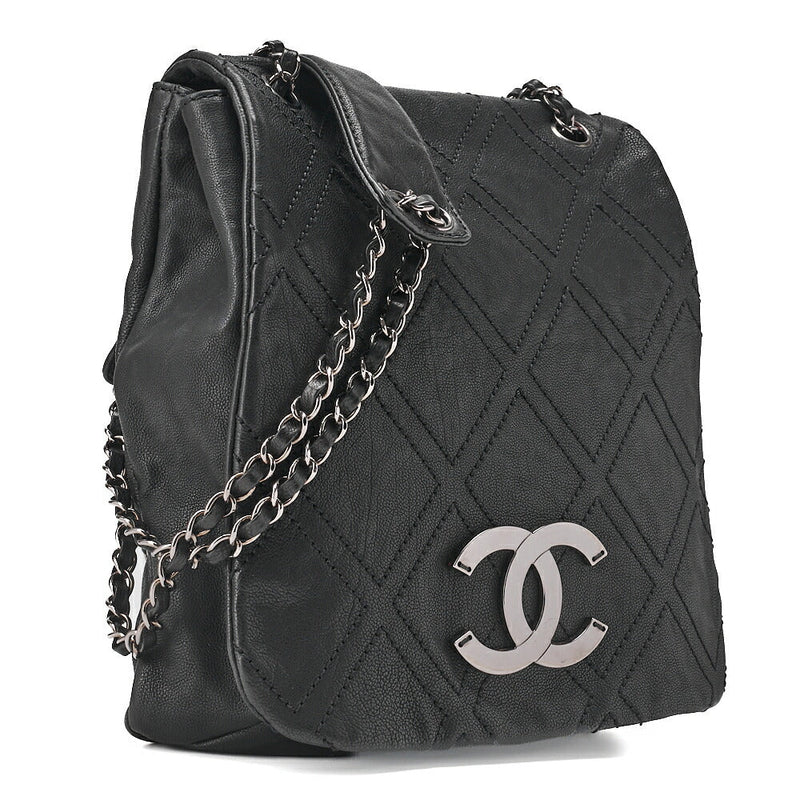 Pre-Owned Shoulder Bag, Chain Shoulder, Matelasse, Caviar Skin, Black, Silver-Tone Hardware, Pre-Owned