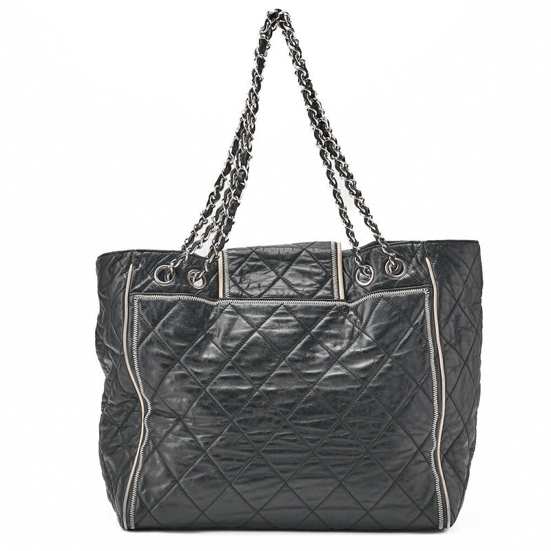 Pre-Owned Shoulder Tote Bag Matelasse Lambskin Black Gold-Tone Hardware Pre-Owned