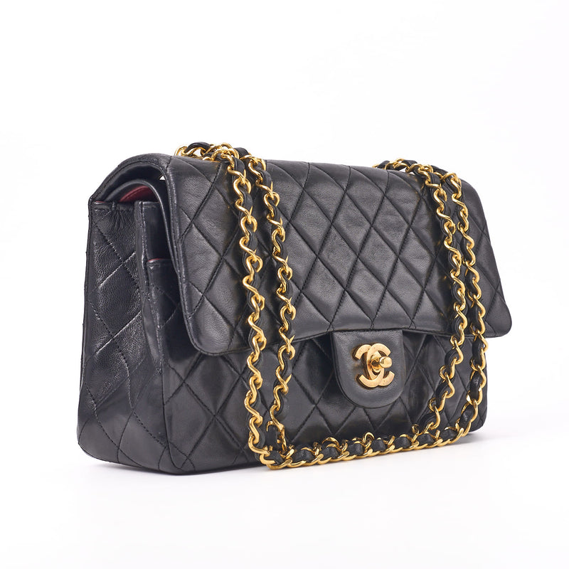 Pre-Owned Chain Shoulder Bag Matelasse Double Flap Lambskin Black Gold-Tone Hardware Pre-Owned