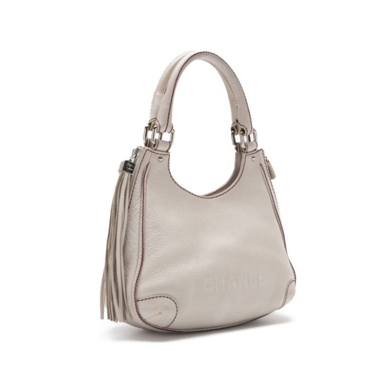 Pre-Owned Shoulder Bag Mini With Fringe, Leather, Ivory, Silver-Tone Hardware, Pre-Owned