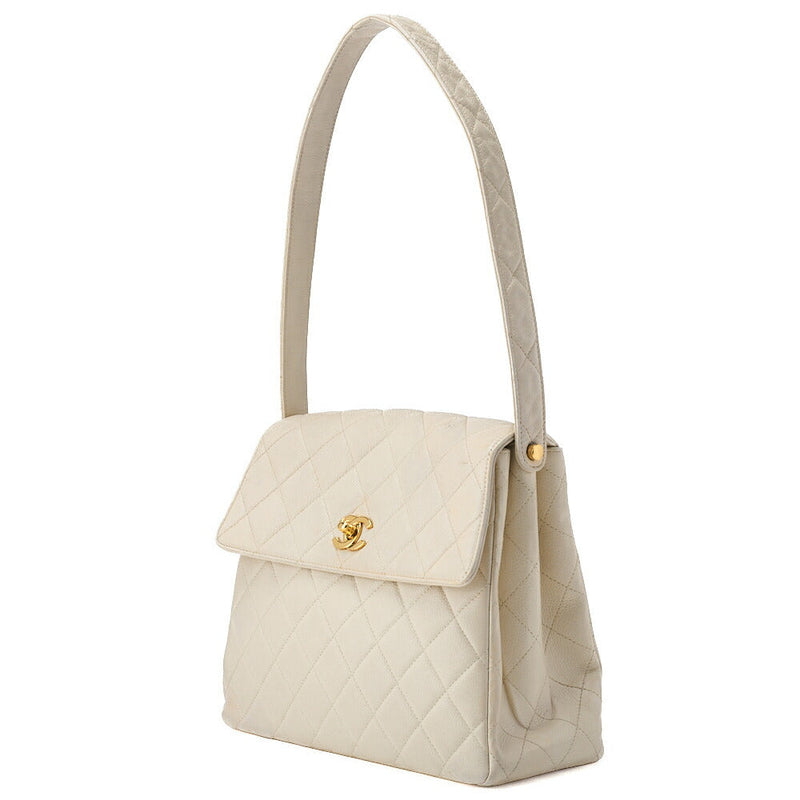 Pre-Owned Shoulder Bag, Chain Shoulder, Matelasse, Caviar Skin, Ivory, Gold-Tone Hardware, Pre-Owned
