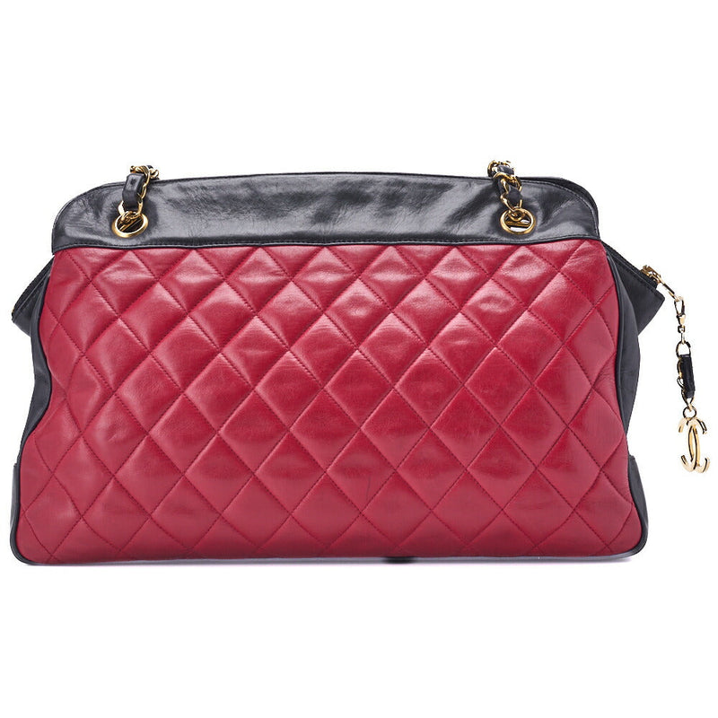 Pre-Owned Shoulder Bag Matelasse Coco Charm Bicolor Chain Shoulder Lambskin Black Gold-Tone Hardware Pre-Owned