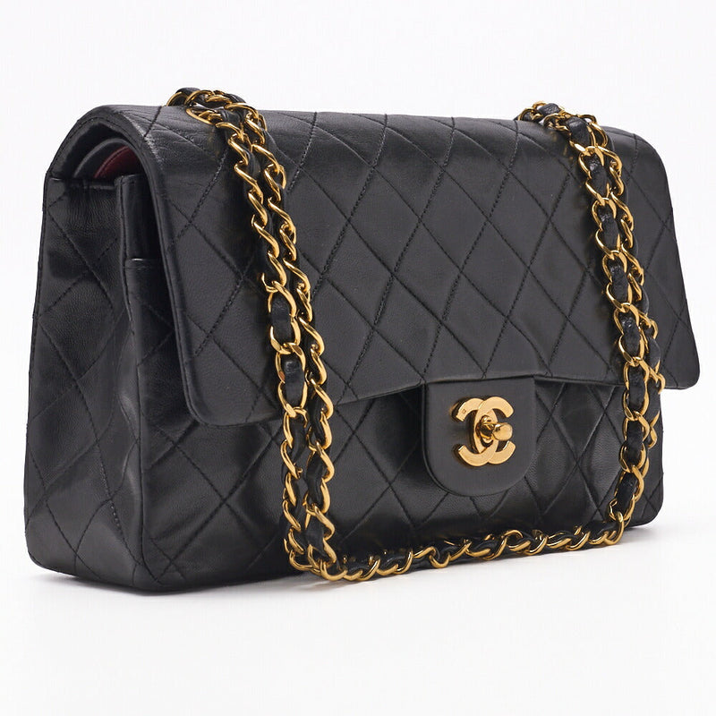 Pre-Owned Shoulder Bag Matelasse Double Flap Lambskin Black Gold-Tone Hardware Pre-Owned