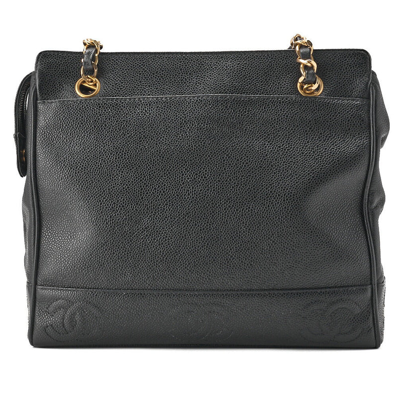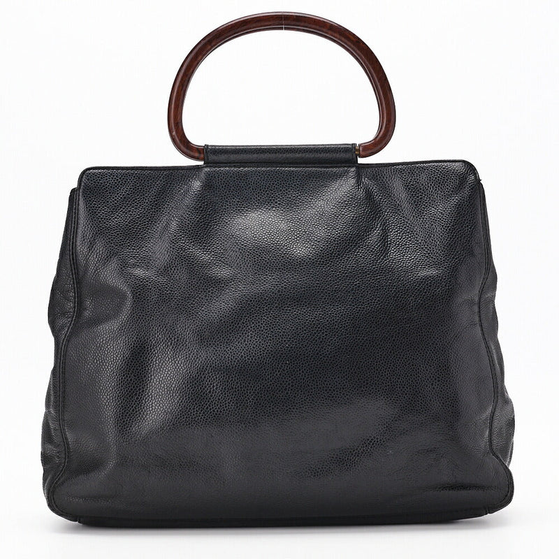 Pre-Owned Handbag Matelasse Coco Mark Wood Pattern Caviar Leather Black Gold-Tone Hardware Pre-Owned