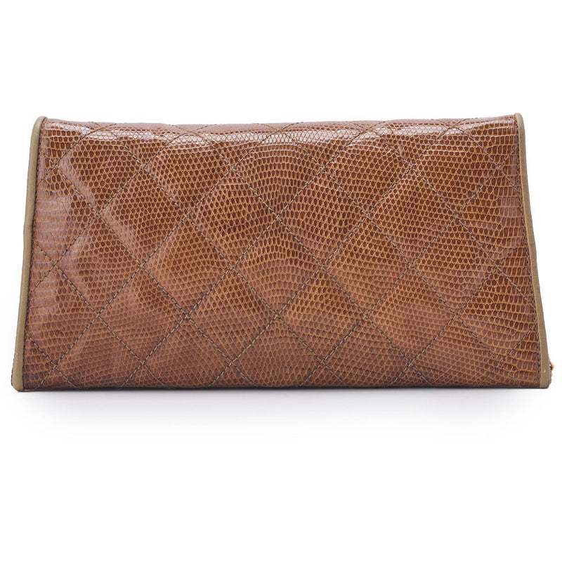 Pre-Owned Shoulder Bag Matelasse Full Flap Push Lock Lizard Beige Gold-Tone Hardware Pre-Owned