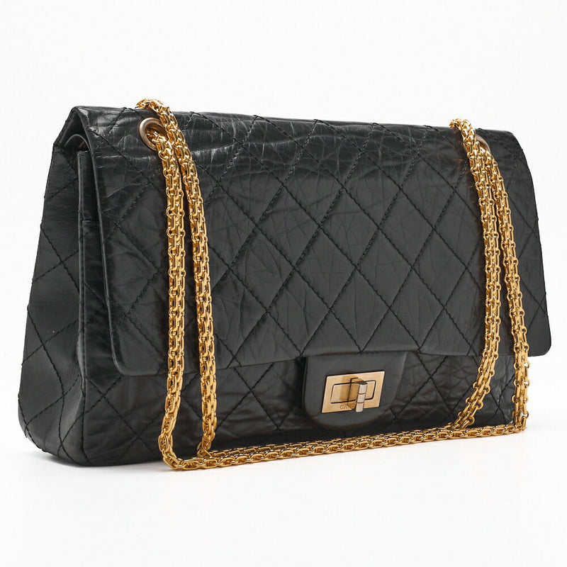 Pre-Owned Shoulder Bag, Deca Matelasse, Turn Lock, Vintage Calf Leather, Black, Gold-Tone Hardware, Pre-Owned