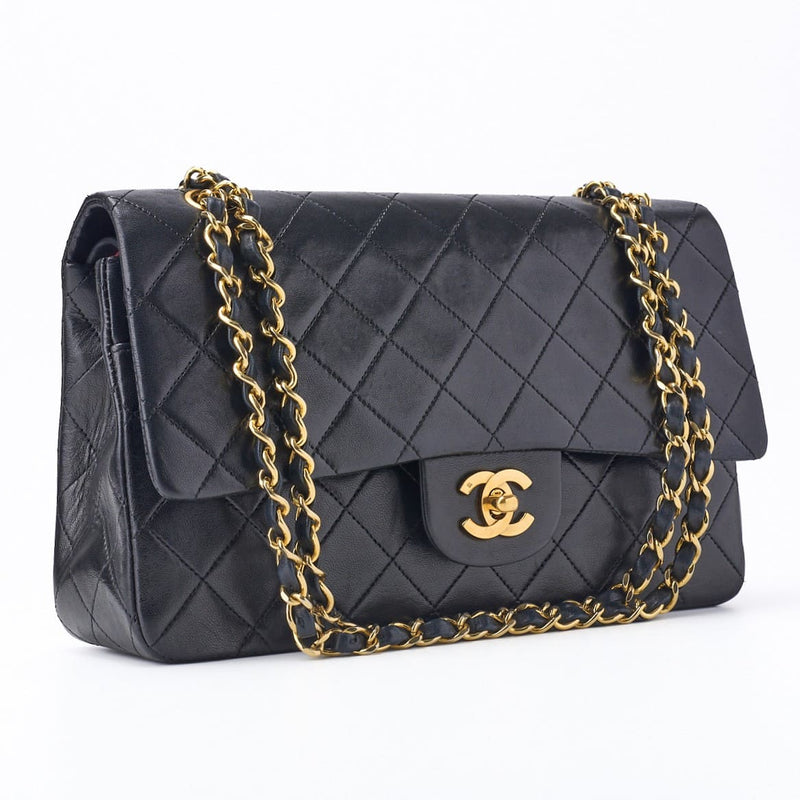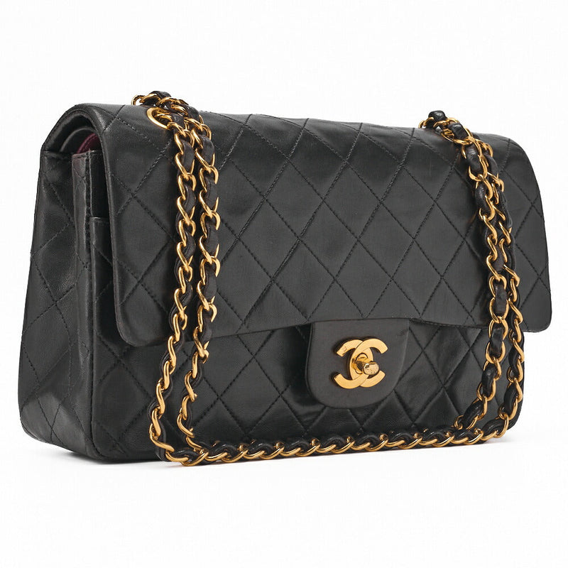 Pre-Owned Shoulder Bag Matelasse Double Flap Lambskin Black Gold-Tone Hardware Pre-Owned