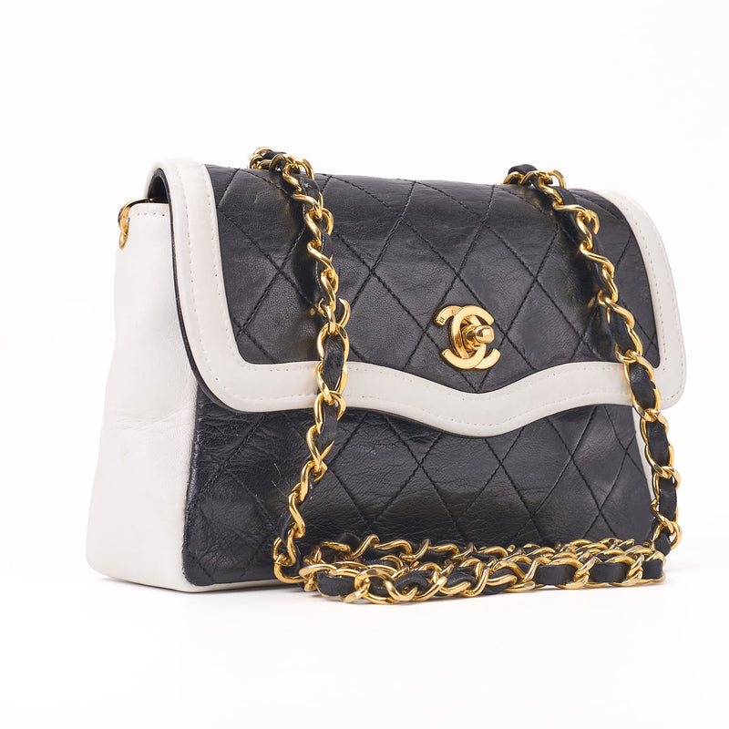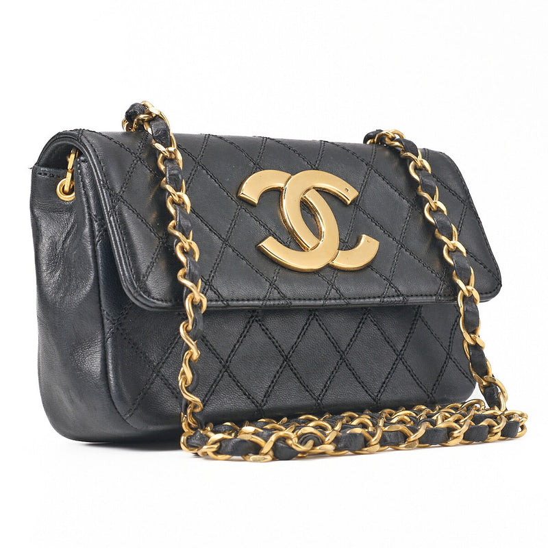 Pre-Owned Mini Shoulder Bag, Matelasse Design, Chain Shoulder, Lambskin, Black, Gold-Tone Hardware, Pre-Owned