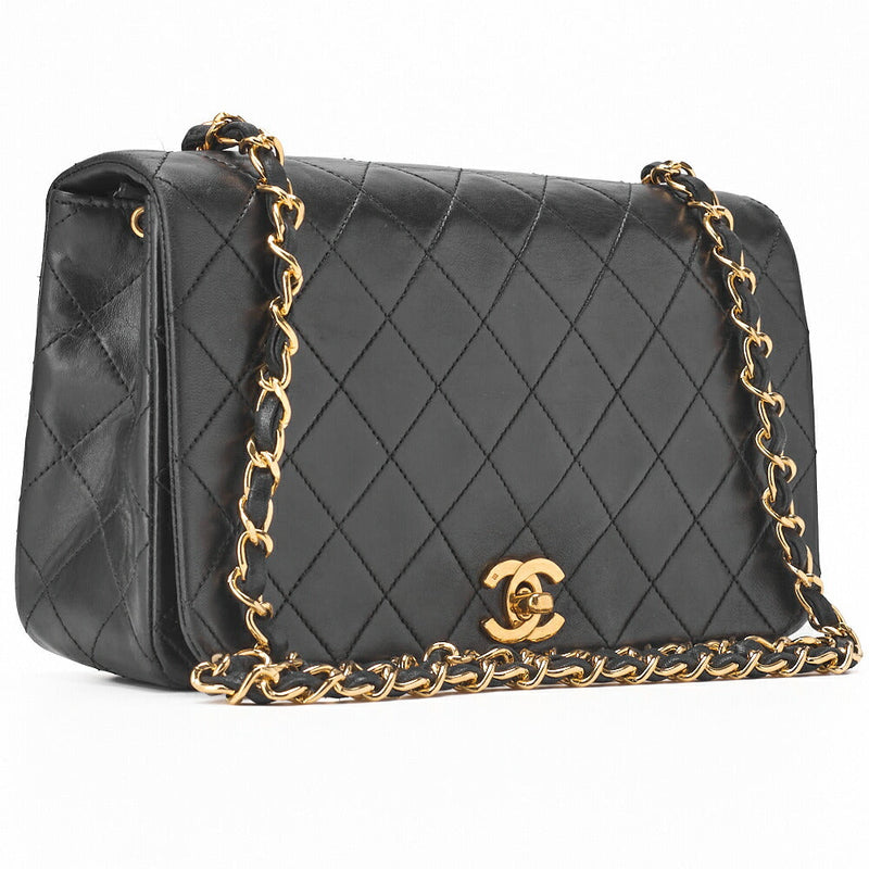 Pre-Owned Shoulder Bag Matelasse Lambskin Black Gold-Tone Hardware Pre-Owned
