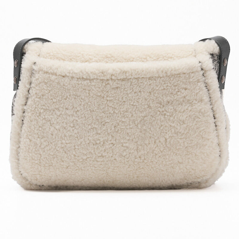Pre-Owned Shoulder Bag Coco Mark Mouton Fur White Gray Silver-Tone Hardware Pre-Owned