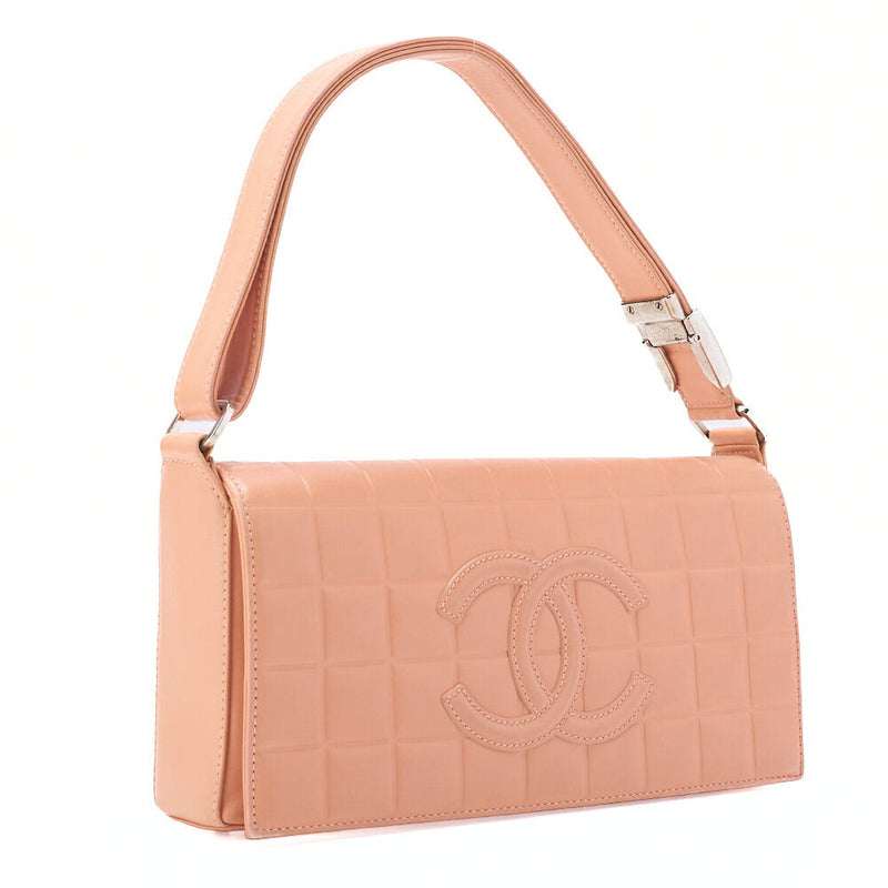 Pre-Owned One Shoulder Bag Chocolate Bar Coco Mark Lambskin Salmon Pink Silver-Tone Hardware, Pre-Owned